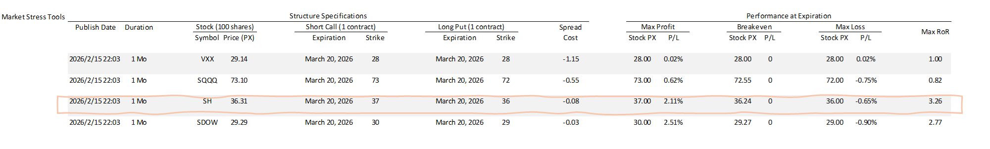Case — SH (ProShares Short S&P 500 ETF), 1-Month Structure